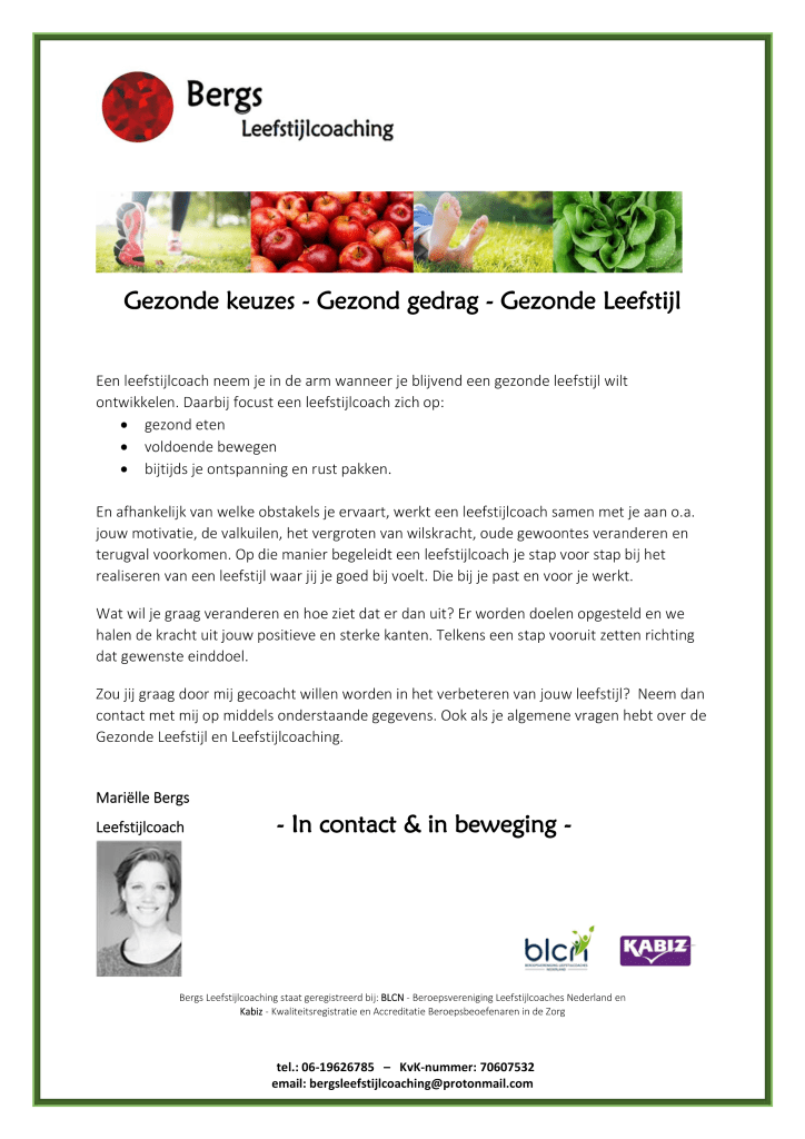 Bergs Leefstijlcoaching Geplaatst doorBergs Leefstijlcoaching11 mei 2021Geplaatst inGeen categorie ‘under construction‘Binnenkort leest u meer op deze site over visie – missie – diensten van Bergs Leefstijlcoaching Dit delen: Share on LinkedIn (Opent in een nieuw venster) LinkedIn Share op Facebook (Opent in een nieuw venster) Facebook Email a link to a friend (Opent in een nieuw venster) E-mail Gerelateerd