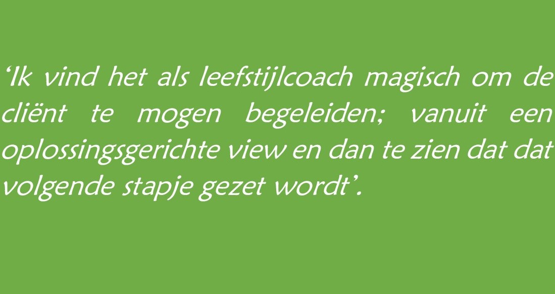 Tijdens de coachingsgesprekken werk ik met de oplossingsgerichte benadering. We zoemen in op de wensen en kunnen sneller de focus leggen op de geformuleerde doelen, op wat jij echt wil bereiken. De kern van oplossingsgericht werken is dat de focus ligt op de gewenste situatie, op reeds bereikte successen, op competenties, mogelijkheden en op ‘stap-voor-stap’. Het is een krachtige, positieve methode om veranderingen te bewerkstelligen. En daar gaat het nu juist ook om; welke stappen zijn er nodig om gedrag te veranderen en die gezonde leefstijl te realiseren? Alleen jij kan jouw gedrag veranderen en ik kan jou daar als leefstijlcoach in motiveren en begeleiden.